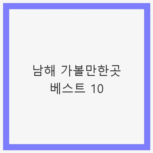 안녕하세요! 오늘은 한국의 아름다운 섬, 남해에서 꼭 가봐야 할 10곳을 소개해드리려고 합니다. 남해는 푸른 바다와 아름다운 자연경관, 그리고 역사적인 유적지가 어우러져 있는 곳으로, 다양한 매력을 지니고 있습니다. 특히 겨울에도 비교적 온화한 날씨를 자랑해 사계절 내내 많은 관광객이 찾아옵니다. 이번 포스팅을 통해 남해의 숨은 보석 같은 명소들을 함께 살펴보도록 하겠습니다.